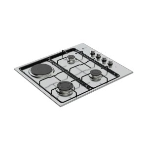 Εντοιχιζόμενες Εστίες Μεικτές 3 Αερίου + 1 Ηλεκτρική 60cm Άνω Πάγκου με Αυτόματη Ανάφλεξη, ΙΝΟΧ, Θερμικά Ασφαλείας, Σχάρες Εμαγιέ, Διασπορείς Εμαγίε, Καυστήρες SABAF