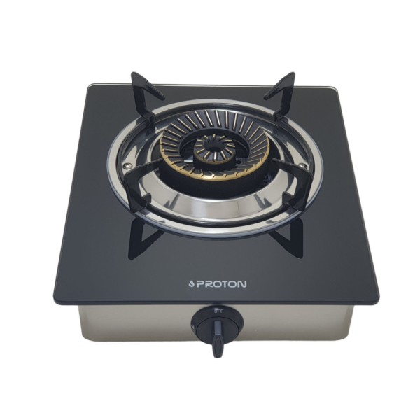 Low Pressure 1-Burner Gas Tabletop Stove, Glass Body, Graduated Switch, Cast Iron Grill, Automatic Ignition